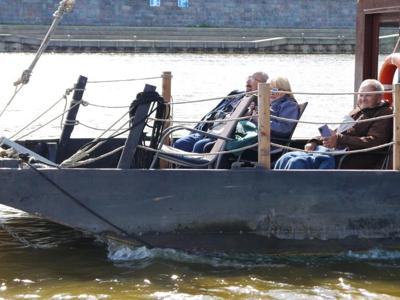 ze złoconymi falszburtami, chodziła, jako wystawa Polskiej Sztuki Ludowej, na której na górnym pokładzie (nadbudówki) widniał baner "Teatr Ziemi Mazowieckiej".