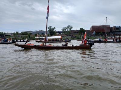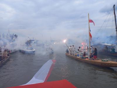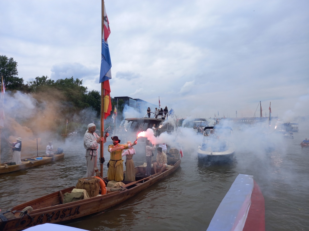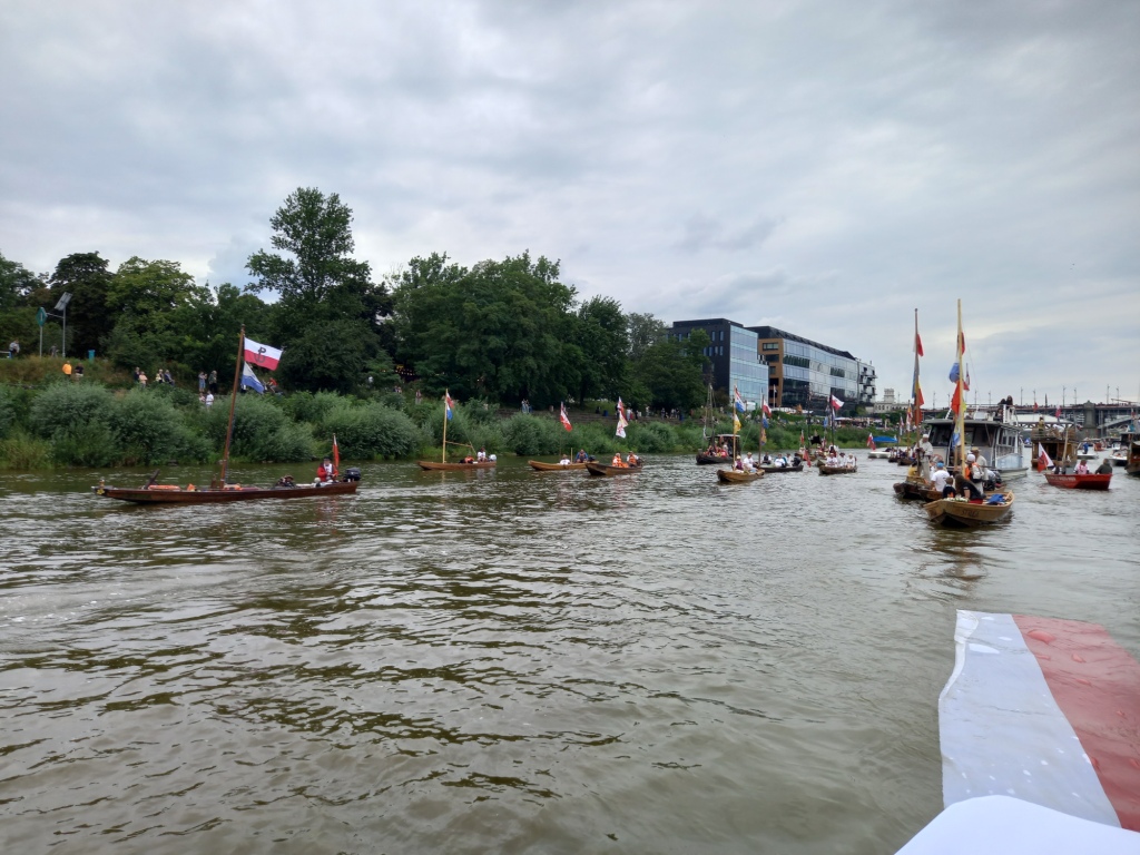 O godzinie 17.00, W godzinie „W”, na środku Wisły, na wysokości Powiśla rozległy się dźwięki syren. Uczestnicy wydarzenia zatrzymali jednostki pływające minutą ciszy oddając hołd Powstańcom Warszawskim. Wraz z innymi popłynął na falach rzeki również nasz wieniec w hołdzie Bohaterom. Wisła, która w 1944 roku była świadkiem dramatycznych wydarzeń, stała się tłem dla aktu pamięci o Warszawskich Powstańcach.