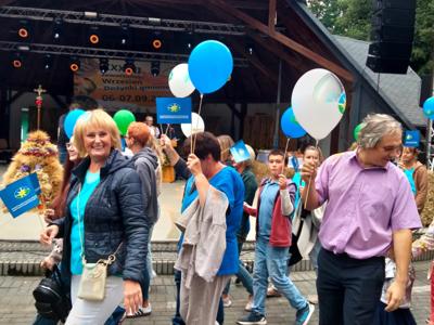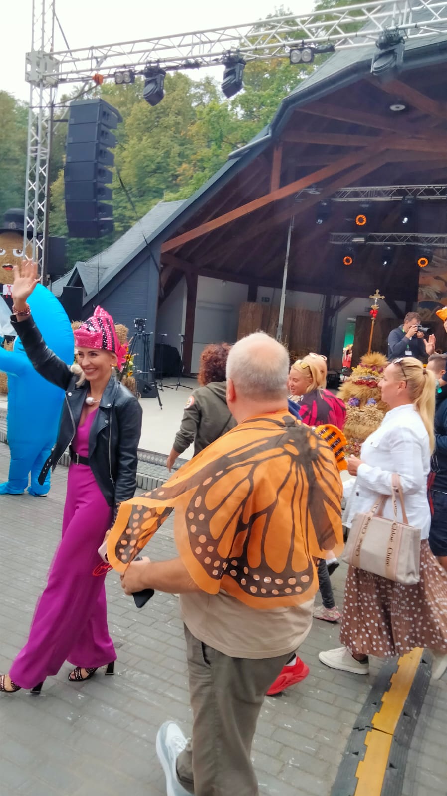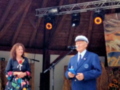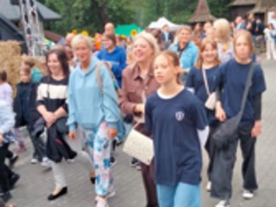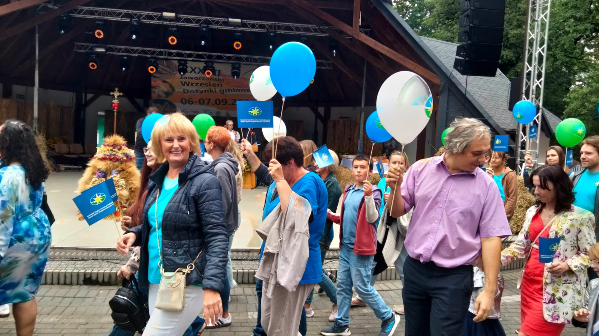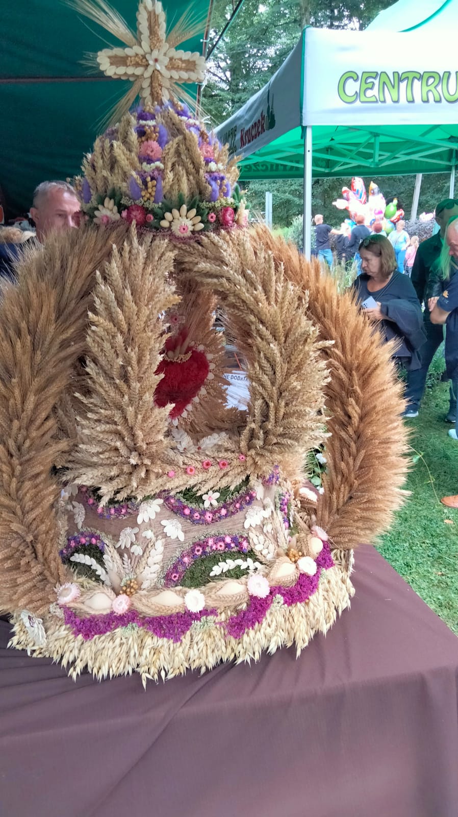 Wcześniej ulicami Jaworza przejechał barwny korowód dożynkowy prowadzony przez Wójt Gminy Annę Skotnicka-Nędzką. Na Jej ręce Starostowie Dożynek złożyli bochen chleba „owoc pracy rąk ludzkich”, by jako Gospodarz Gminy sprawiedliwie rozdzielała go wśród mieszkańców. Prezes Okręgu LMiR w Bielsku-Białej Edward Szpoczek przekazał pozdrowienia od Zarządu Głównego, a zwłaszcza od tych, którzy uprawiają polskie rzeki, jeziora i morze, by ich owocami dzielić się z tymi co na lądzie. Tym co łączy obie te grupy producentów żywności jest woda. Niestety jest jej coraz mniej. Dlatego zaapelował, by wszyscy włączyli się w ochronę i racjonalne korzystanie z jej zasobów. Od 2004 roku robi to Pani Wójt, kiedy została powołana na Sekretarza Gminy a następnie na Zastępcę Wójta, by 09.06.2024 zostać wybraną na Urząd Wójta. Od początku piastowania tych funkcji współpracowała ze Szkolnym Kołem LMiR w SP 2 oraz z Muzeum Fauny i Flory Morskiej i Śródlądowej zapewniając środki materialne na ich działalność. Dlatego Prezes Ligi kpt. ż.w. Andrzej Królikowski nadał Jej „Honorową Odznakę” - Krzyż Pro Mari Nostro”. Fakt ten potwierdził Aktem Nadania pisząc: „Z okazji 105- rocznicy Zaślubin Polski z Morzem w Pucku – w uznaniu zasług dla edukacji morskiej, krzewienia w społeczeństwie idei „Polski Morskiej” składam gratulacje i podziękowania oraz hołd wszystkim Ludziom Morza, którzy w sztafecie pokoleń wypełniają staszicowskie przesłanie „Trzymajmy się Morza”, trwając na wachcie w codziennej wiernej służbie Rzeczypospolitej Polskiej”.